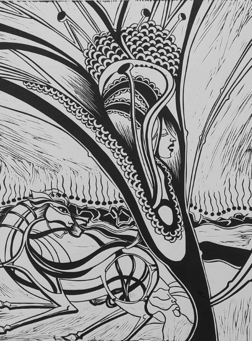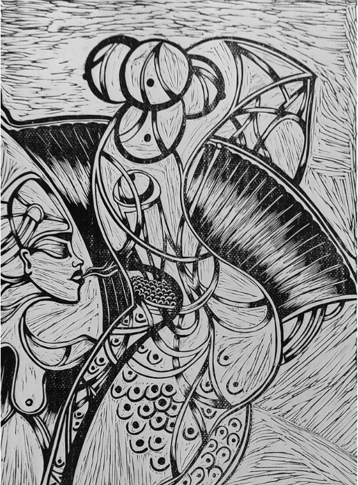 NÍarfe es capaz de recrear mundos irreales habitados por seres fantásticos humanizados que parecen danzar a la vida cópulas eterna.